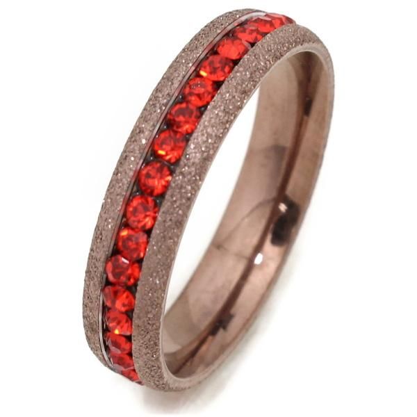 キラキラのラメブロンズゴールド・リングに、キラキラのレッドストーンがずらりと並んだ、ゴージャスなデザインリング。二種類のきらきら感で、優雅に華やかに魅せてくれます。
