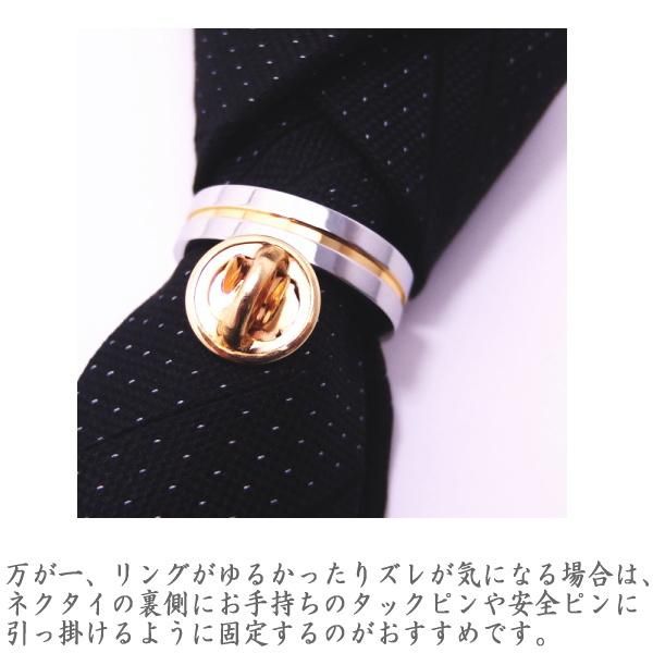 高級感を感じられる艶やかなステンレス製で、通常の太さのネクタイにも着けられる、内計約20mmです。