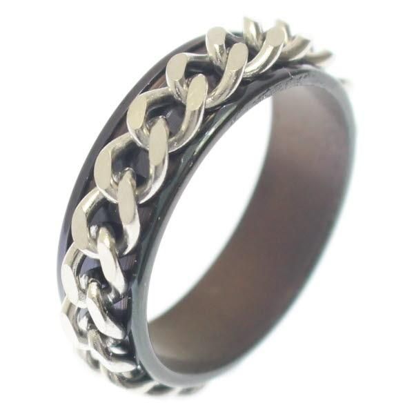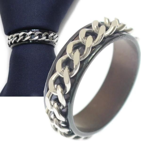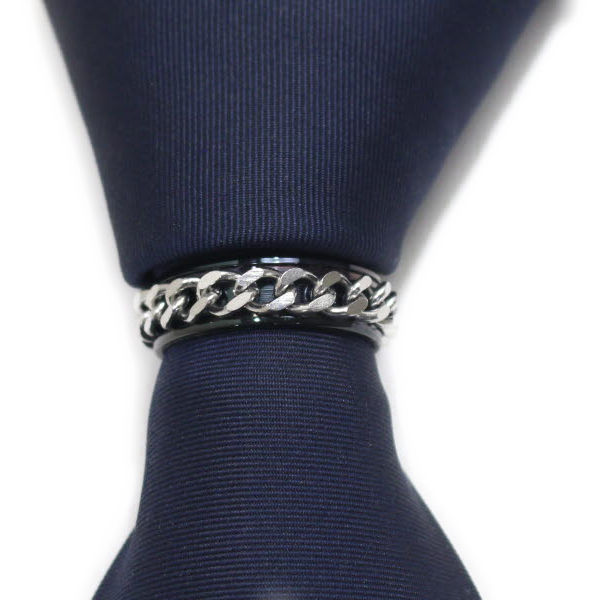ネクタイリング・ガンメタリック×チェーンデザインのタイリング (スカーフリング)