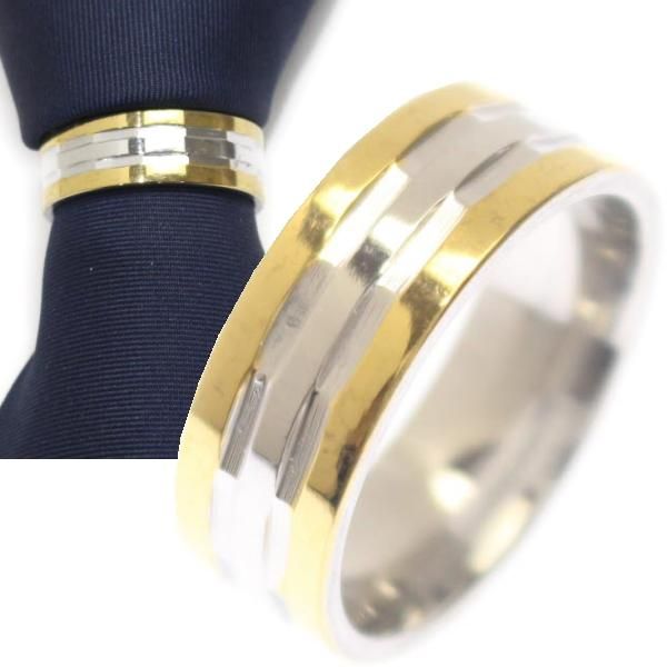ネクタイリング・ゴールド×シルバー・ストライプのタイリング (スカーフリング)