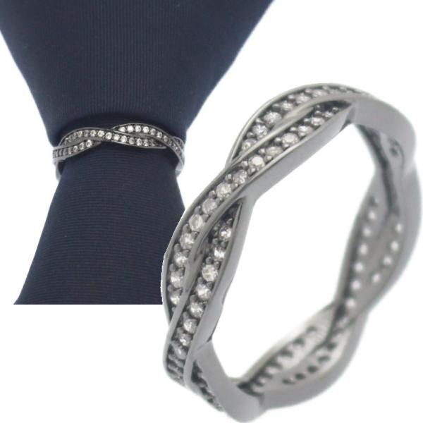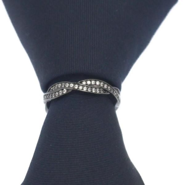 ネクタイリング ガンメタリック ラインストーン タイリング