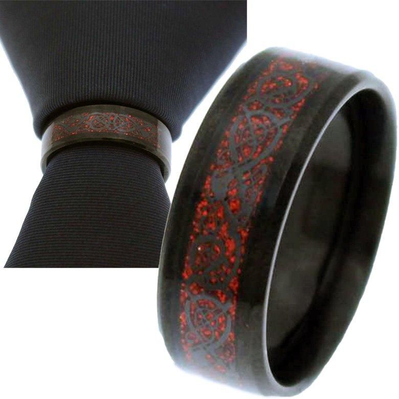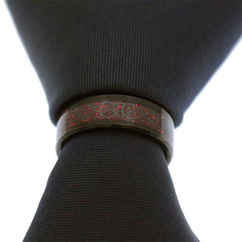 ネクタイリング ブラック × レッド ドラゴン風 デザイン ネクタイリング スカーフリング タイリング
