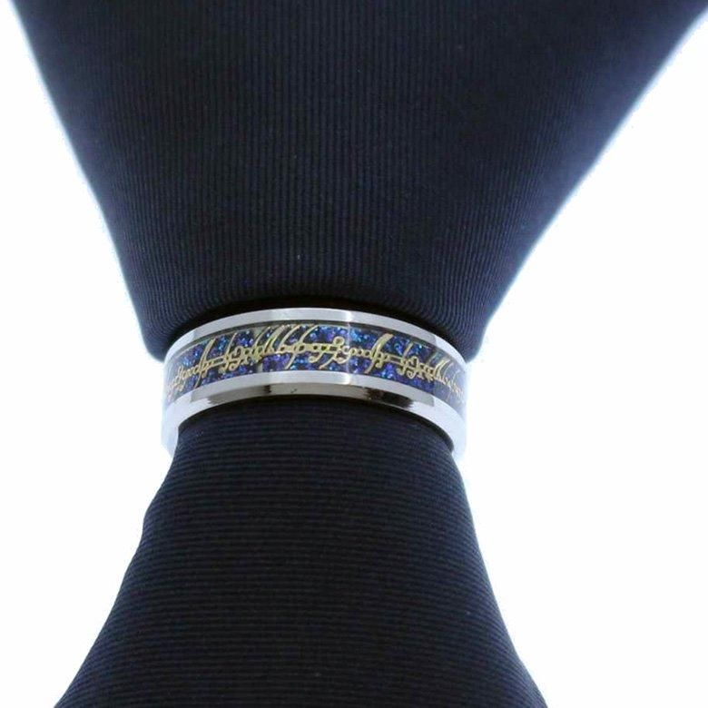 ネクタイリング シルバー×ブルー ラメ 文字 デザイン カラフル きらきら タイリング スカーフリング