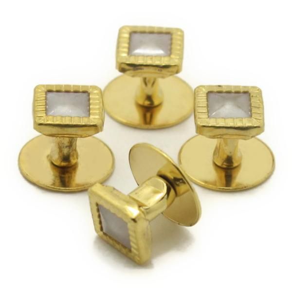スタッドボタン ホワイト ゴールド スクウェア4個セット (スタッズボタン)