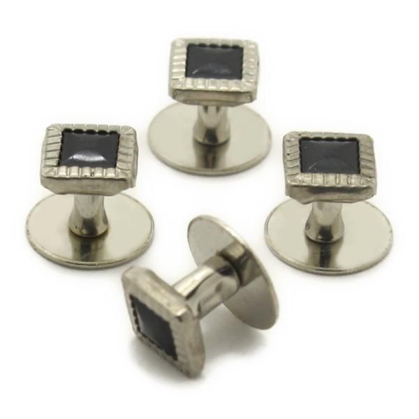 スタッドボタン ブラック シルバー スクウェア4個セット (スタッズボタン)