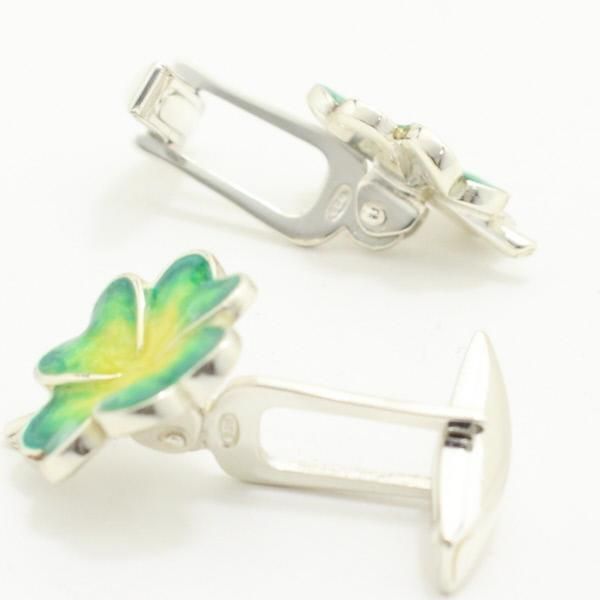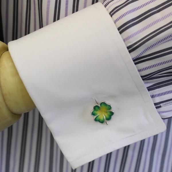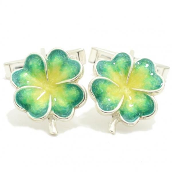 ラッキーのシンボル、四つ葉のクローバーのカフスボタン。