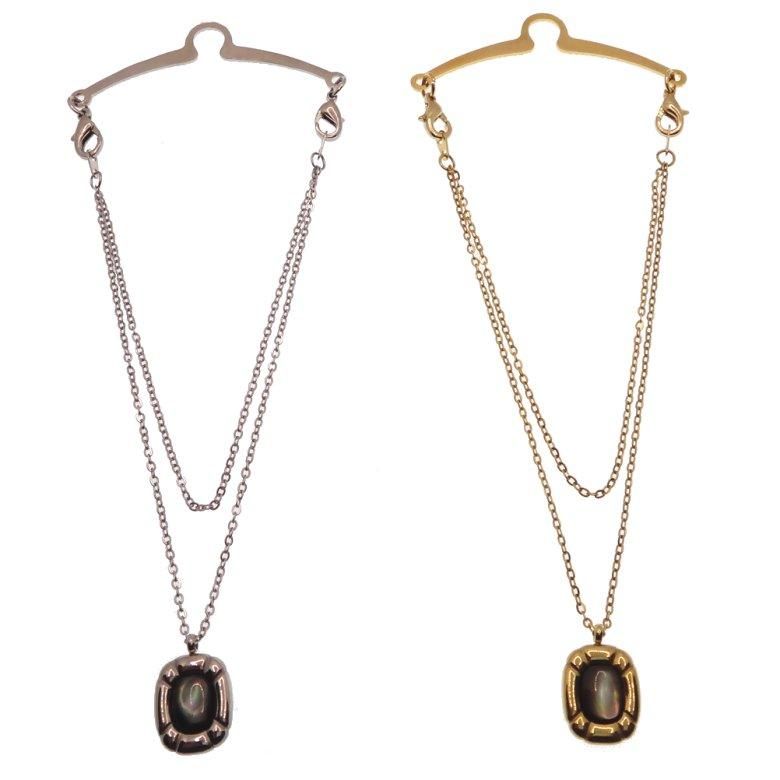 動く度に揺れるネクタイチェーンがシンプルながらも優雅に輝きます。