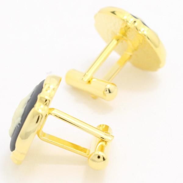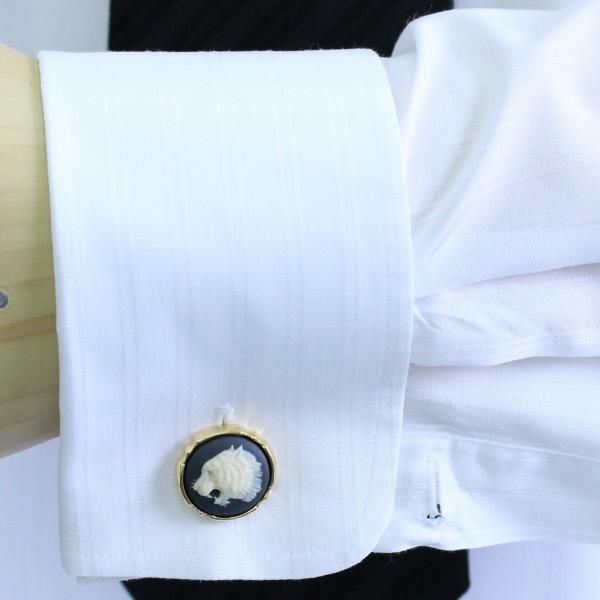 【陶華・TOHCA】ゴールド・ラウンド吠える虎カメオ・グレーのカフス(カフリンクス/カフスボタン)
