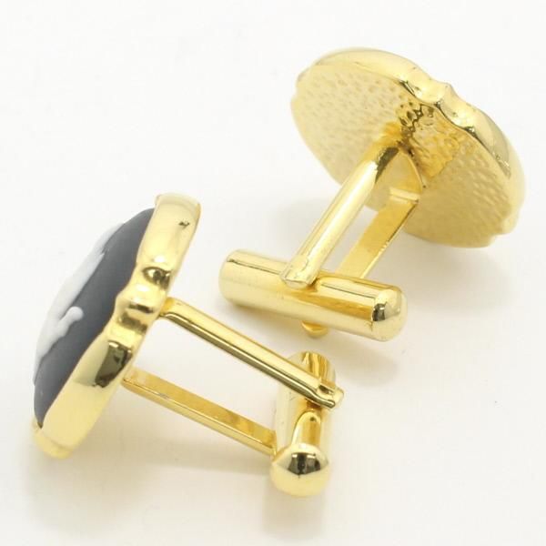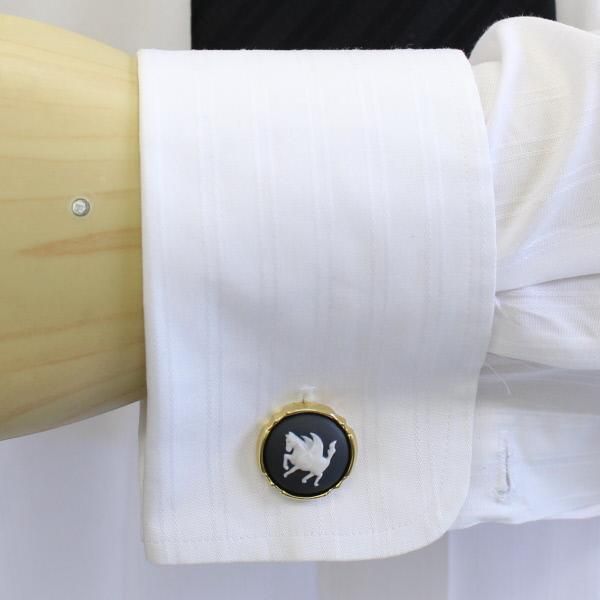 【陶華・TOHCA】ゴールド・ラウンド・ペガサスカメオ・グレーのカフス(カフリンクス/カフスボタン)
