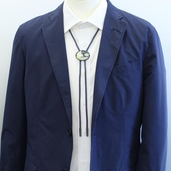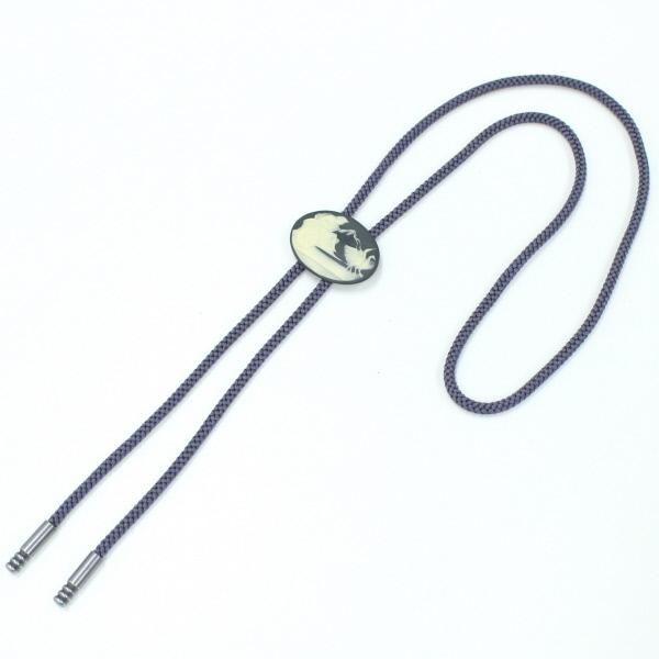 【陶華・TOHCA】オーバル・白鳥と車・グレーのループタイ(ポーラー・タイ)
