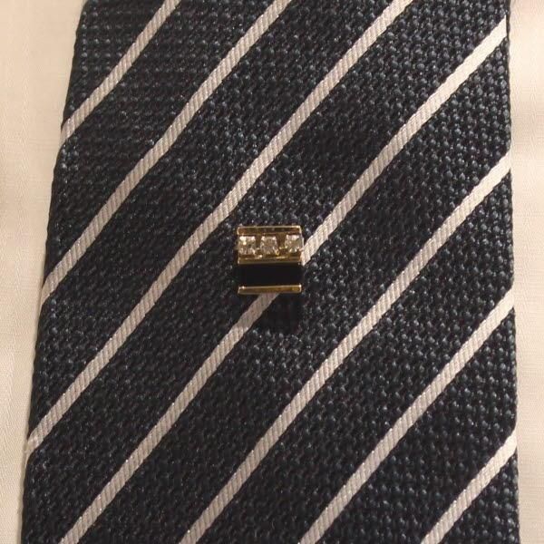艶やかなゴールドにクリアとブラックのストーンが輝くタイタックです。