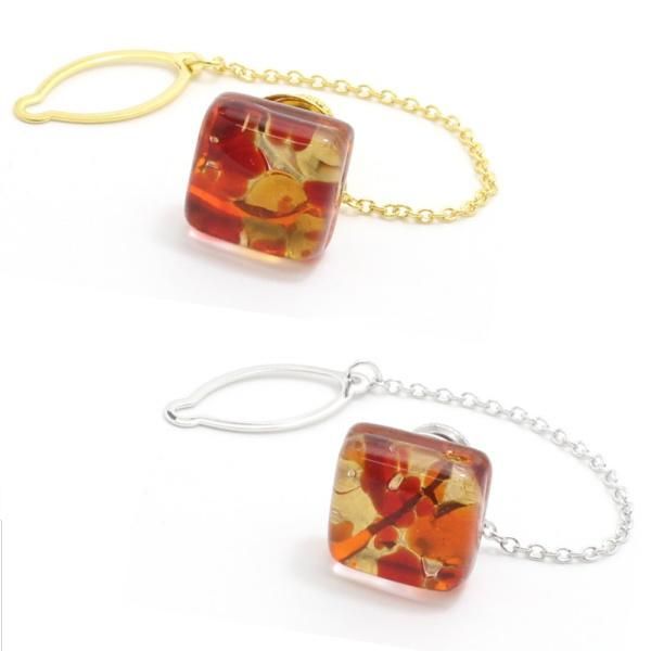 全2色・ムラーノ・ベネチアンガラス・ゴールド×レッドのタイタック(ピンブローチ)