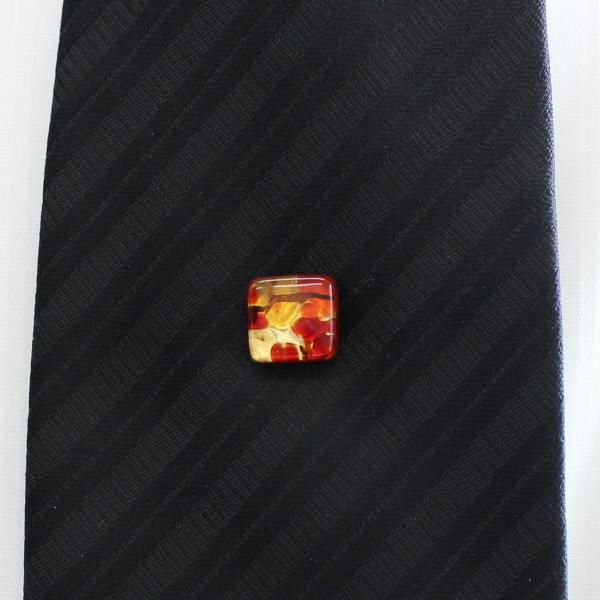 こちらは模様を付け、板状にしたガラスを切り出したネクタイピンです。