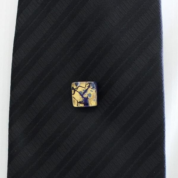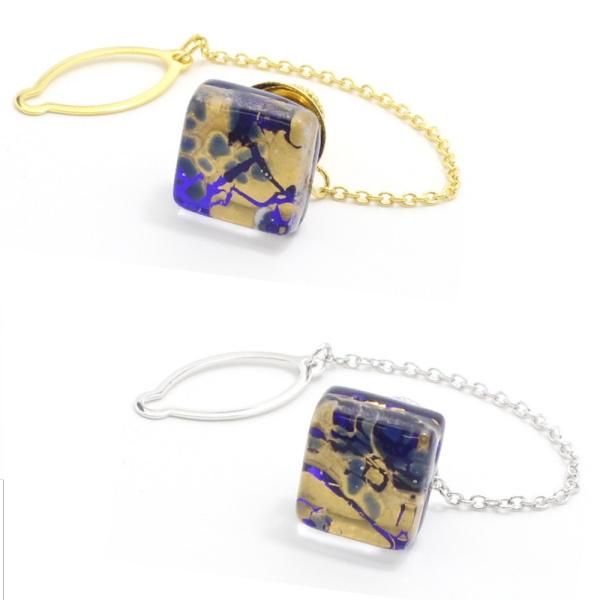 全2色・ムラーノ・ベネチアンガラス・ゴールド×ブルーのタイタック(ピンブローチ)