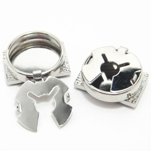 いつものボタンにカバーするように、ボタンの縫い足に留め金を引っ掛けつつ、パチンと留め金で固定して着けるだけ。