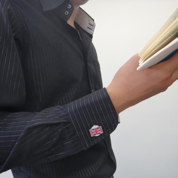 お揃いユニオンジャックの、カフス、マネークリップ、タイピン、タイタック・ブローチもあります。