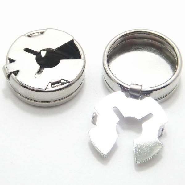 いつものボタンにカバーするように、ボタンの縫い足に留め金を引っ掛けつつ、パチンと留め金で固定して着けるだけ。
