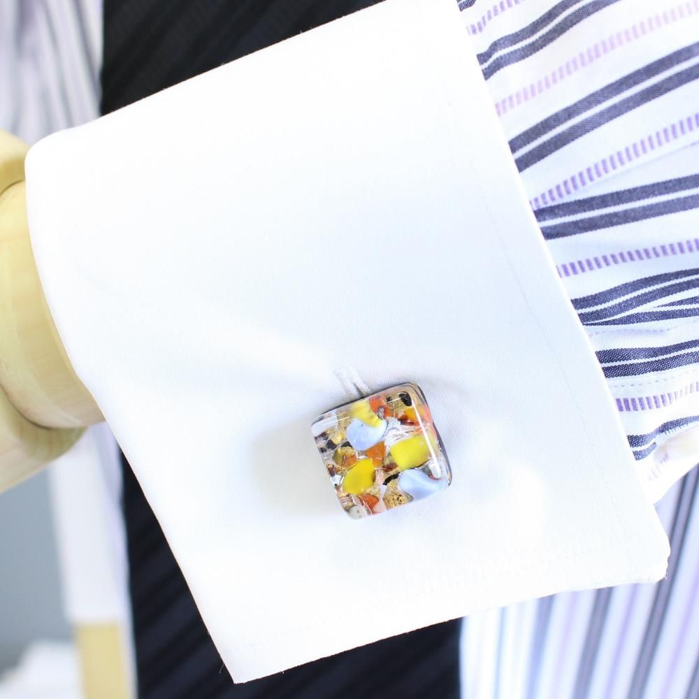 ムラーノ・ベネチアンガラス・スクエア・ムッリーネ36のカフス(カフスボタン/カフリンクス)