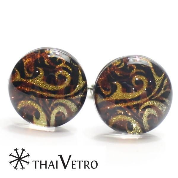 【ThaiVetro】べっ甲カラー・ウェーブデザインのガラス製カフス(カフスボタン/カフリンクス)
