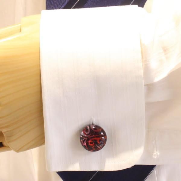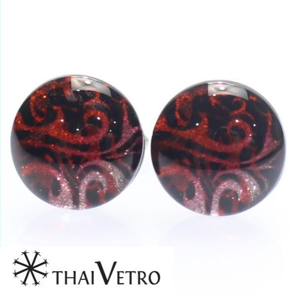【ThaiVetro】レッドグラデーション・ウェーブデザインのガラス製カフス(カフスボタン/カフリンクス)