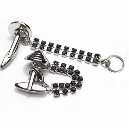カフリンクスを二倍楽しめる、カフスチャーム(カフスチェーン)。