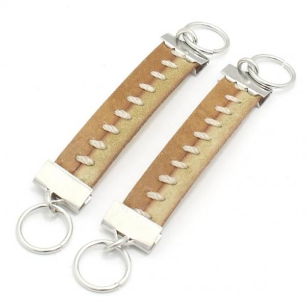 マロン×ベージュ革レザー・センターステッチのカフスチャーム(カフスチェーン)